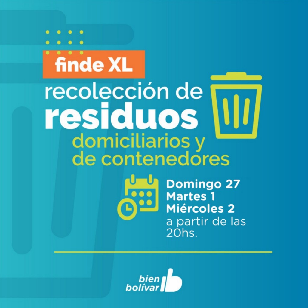 Es fin de semana la recolección de residuos domiciliaria y de contenedores se llevará a cabo los días domingo 27 de febrero, martes 1 y miércoles 2 de marzo en el horario habitual.