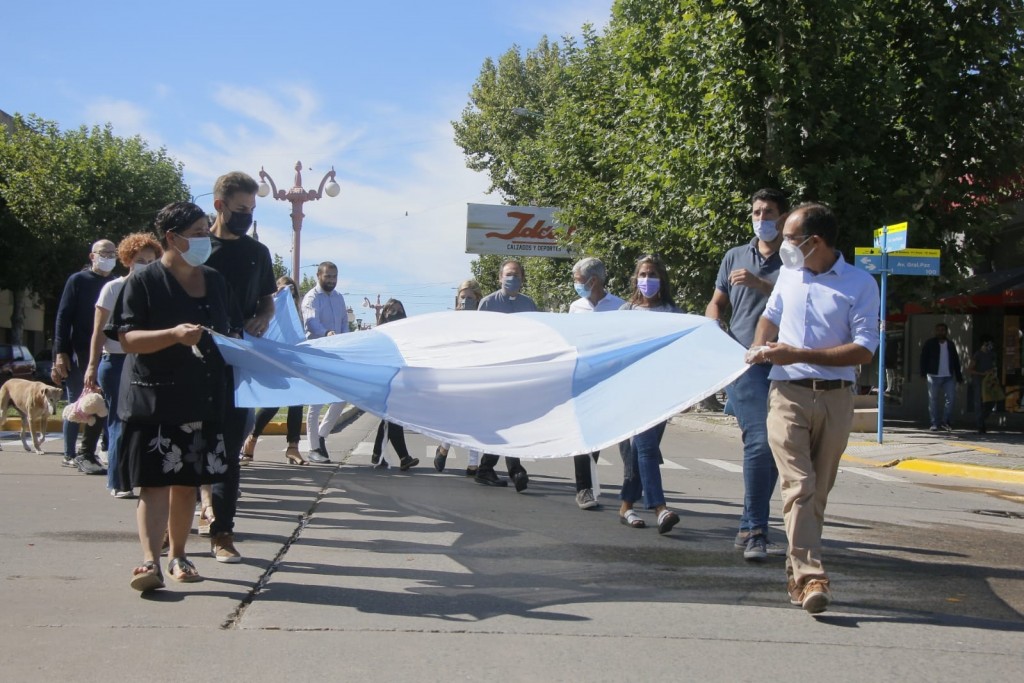 En miércoles 2 de marzo, se llevó a cabo el acto por el 144° aniversario de San Carlos de Bolívar, encabezado por el intendente Marcos Pisano, acompañado por el ejecutivo y autoridades locales.-