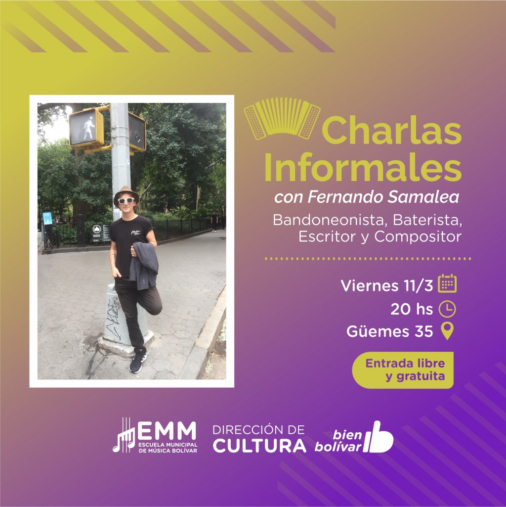El encuentro con entrada libre y gratuita tiene como protagonista al bandoneonista, baterista, escritor y compositor, Fernando Samalea.
