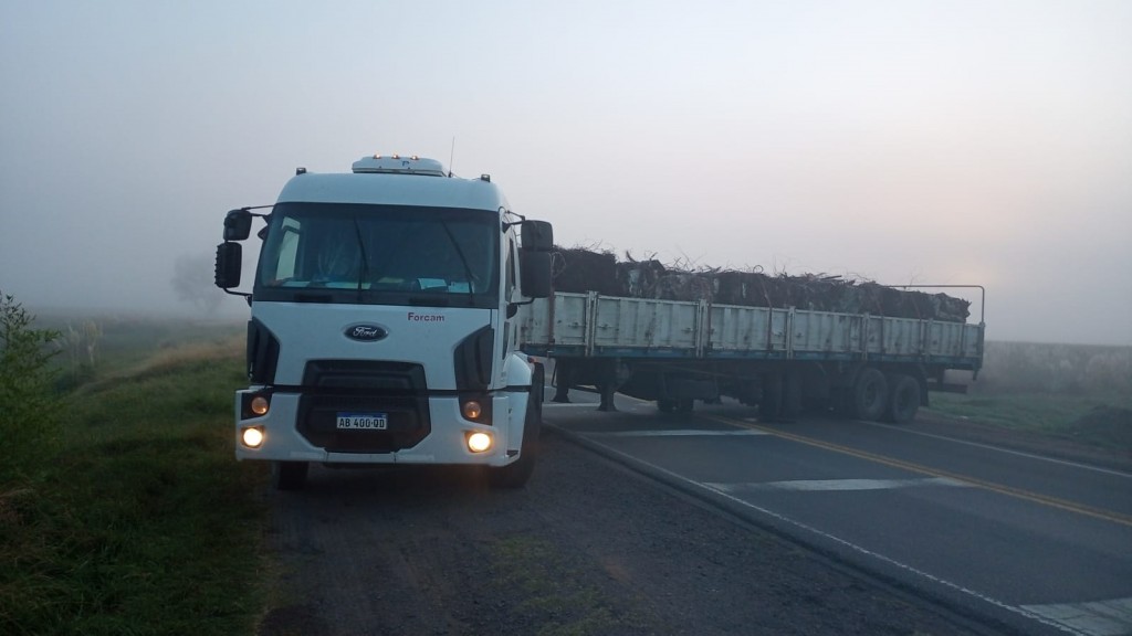Se trata de un camión Ford Cargo con dominio colocado (AB400QD), que remolcaba un semi con dominio colocado (IEO291), quedando cruzado sobre la cinta asfáltica, cortando la circulación sobre la ruta nacional 205.-