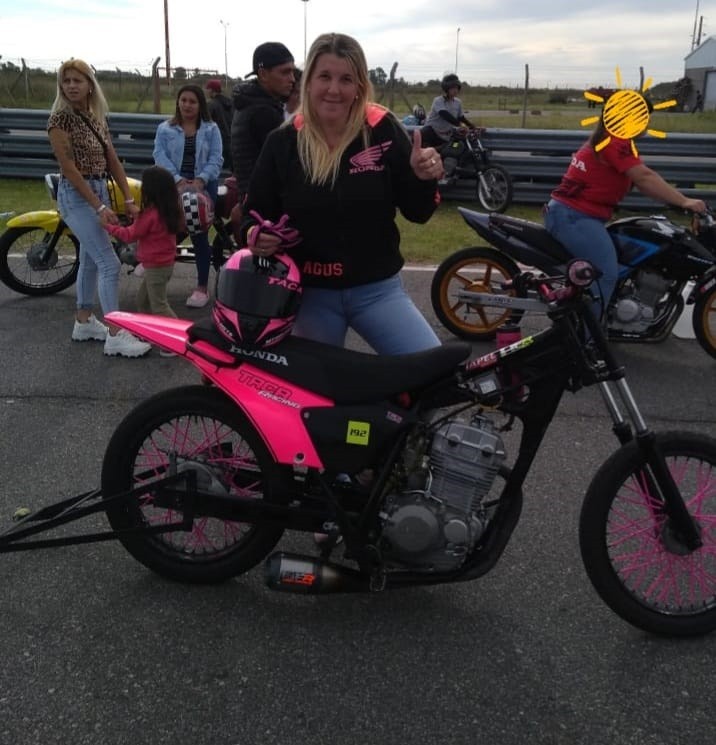 Más allá de que las picadas ya habían arrancado, y que tenía la moto preparada, a “Taca” le fue difícil volver a las pistas, pero uno de los chicos de Pirovano “salió de trabajar, vino a buscarme, me cargó la moto, fuimos donde vamos a probar y la realidad, es que necesitaba un empujón así” para regresar, explicó la piloto.
