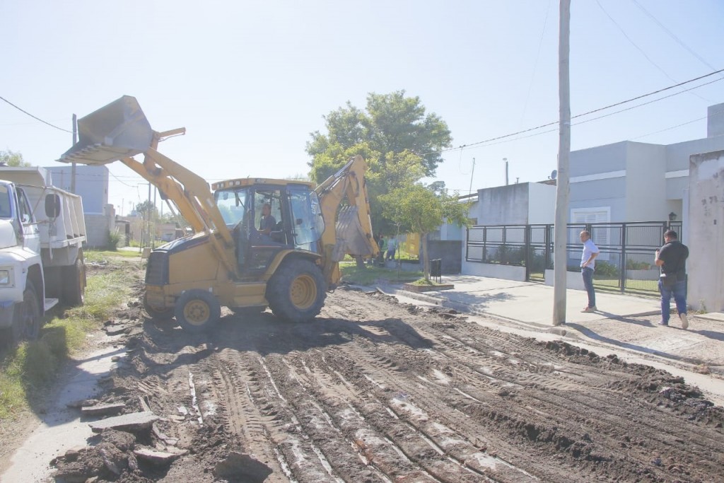 La cuadrilla municipal, a cargo de Lucas Ezcurra, instaló el obrador y comenzó con la demolición de la capa asfáltica existente para posteriormente realizar la nivelación y el hormigonado.
