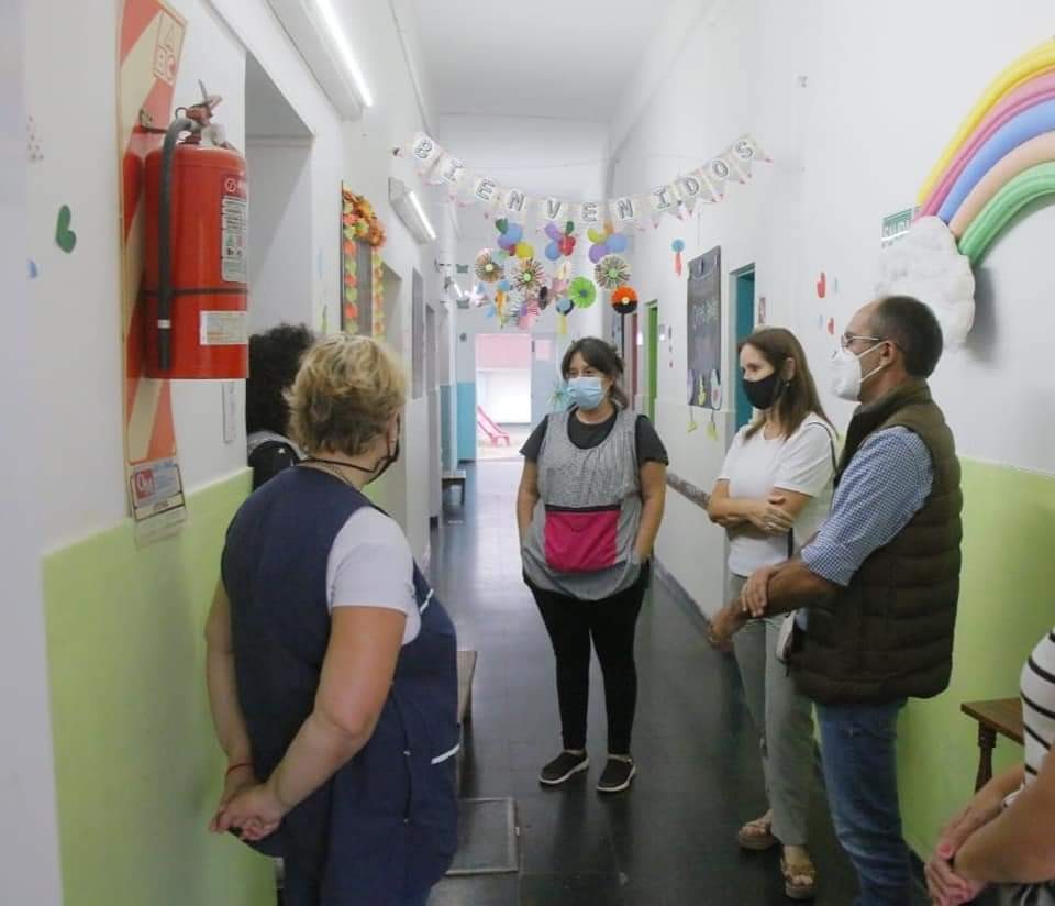 El jefe comunal Marcos Pisano y la concejala Patricia Ponsernau, acompañaron a Novillo en su primer día de trabajo en ambos jardines donde fue recibida por personal docente y auxiliar.