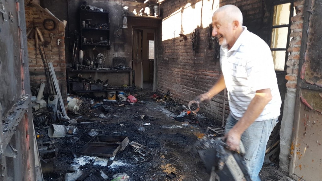 De profesión plomero y con su taller en un barrio donde nació, y se desarrolló junto a su familia, sufrió el incendio total de su taller con pérdidas absolutas.-
