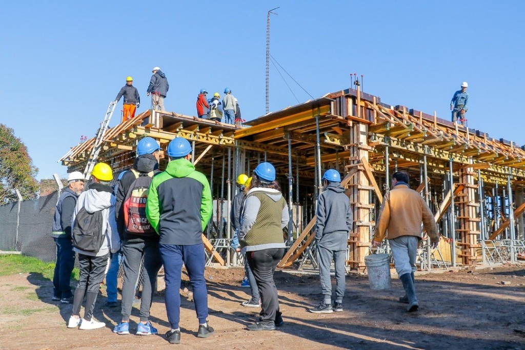 Acompañados por el secretario de Obras Públicas, Lucas Ezcurra, estudiantes de la Escuela Técnica recorrieron la obra en construcción de la Casa de la Provincia en Bolívar.
