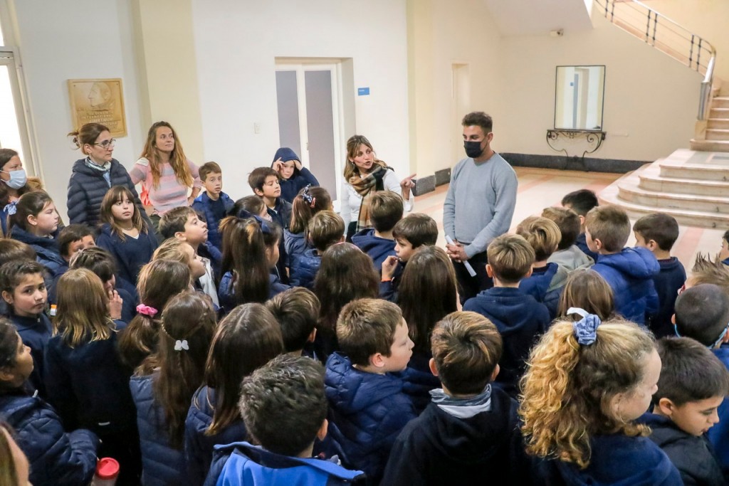 Acompañados por las docentes Pierina Lede y Betina Aguilar, los/as niños/as fueron recibidos en el Municipio por el director de Juventudes José Aristondo y la directora de Prensa Celeste Manghi.