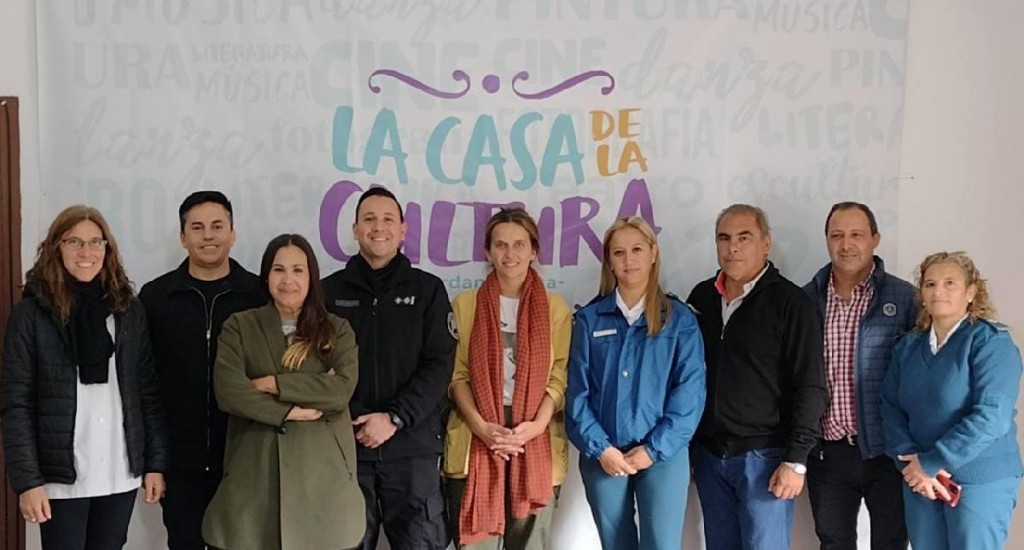 Esta mañana en la Casa de la Cultura de Urdampilleta, se reunieron para diagramar la jornada el director de Cultura Jorge Fernández, la directora de Prensa Municipal Celeste Manghi, el delegado municipal interino Mario Fernández, Magalí Acosta encargada de Ceremonial y Protocolo de la Escuela de Cadetes, Eric Wolfenson jefe de Cuerpo de la Escuela de Cadetes, Eugenia Barrionuevo subdirectora de Administración, y las integrantes del SPB Valeria Belén y Marina Martín.
