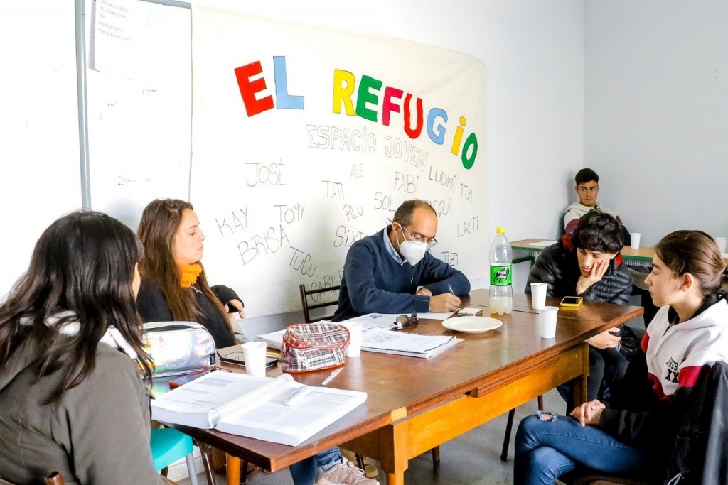 En la Dirección de Juventudes, a cargo de José Aristondo, se generó un espacio de estudio compartido al que los estudiantes llaman "El Refugio", y este viernes, recibieron la visita del intendente Marcos Pisano.-