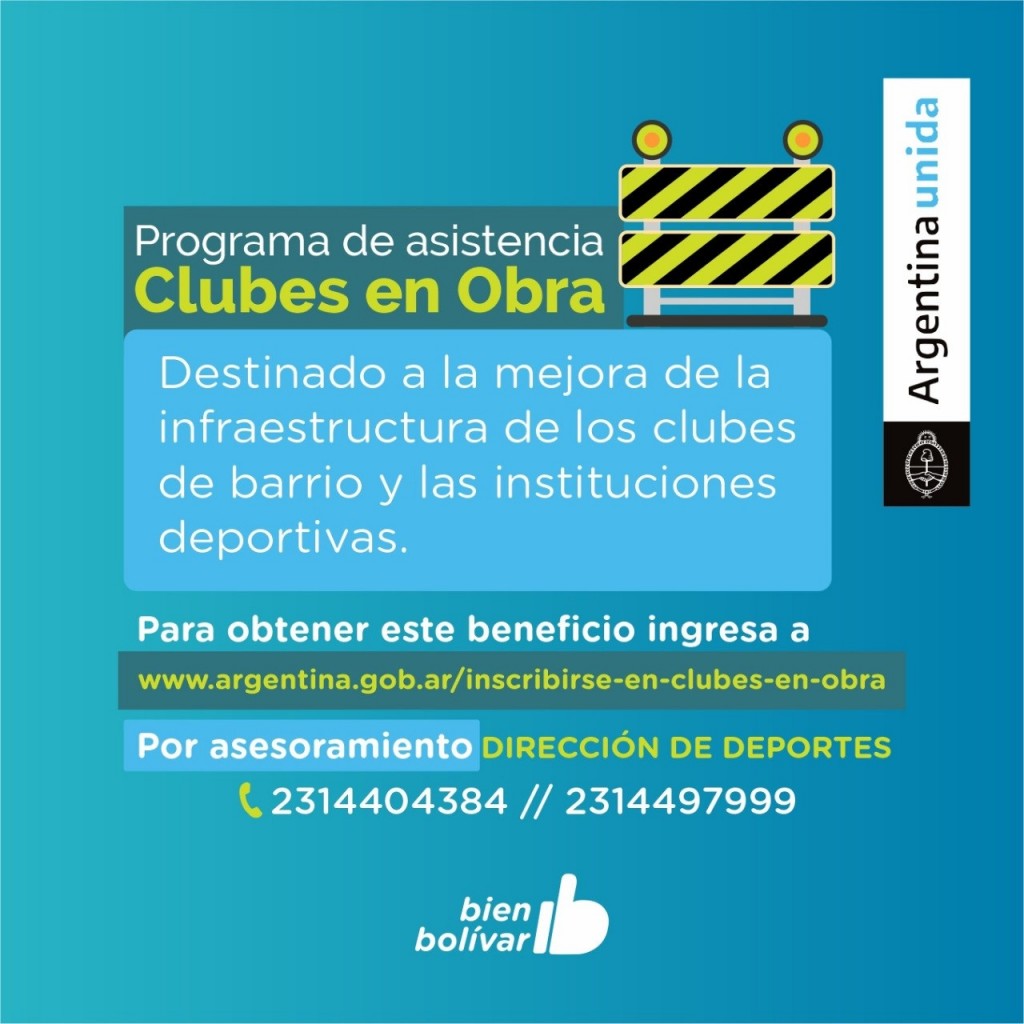 La Dirección de Deportes de la Municipalidad, a cargo de Alejandro Viola, informa a la comunidad que se encuentra abierta hasta el 24 de junio la inscripción al Programa Clubes en Obra.-
