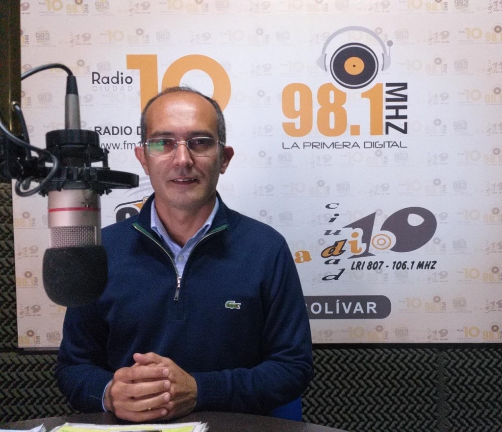 El mandatario comunal visitó los estudios de FM 10 este jueves, y habló con Jorgelina Gherbi y Daniel Ledesma, sobre la mejora de los ingresos lograda en beneficio del empleado municipal, la obra pública que se está ejecutando y el ambicioso proyecto de relocalizar la planta depuradora que quedó atrapada por la urbanización.-