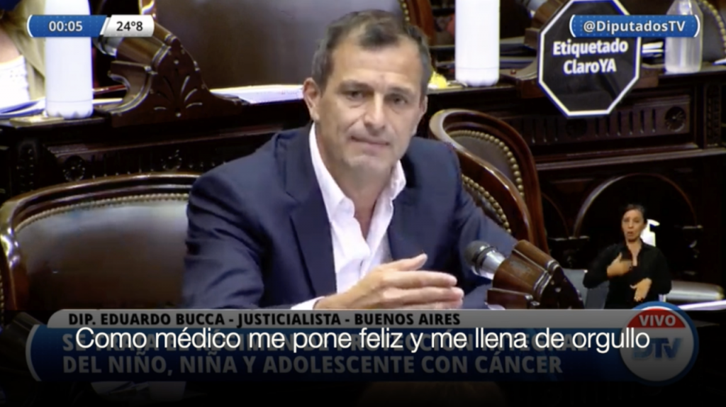 El proyecto de ley “Régimen de Protección Integral para los niños, niñas y adolescentes con cáncer”, votado por unanimidad en la Cámara de Senadores de la Nación, incluye los aportes presentados por el médico y ex diputado nacional Eduardo Bucca, cuando en octubre del año pasado logró que su proyecto de cáncer infantil “Espera Cero”, obtuviera media sanción, con 226 votos afirmativos y ninguno negativo.