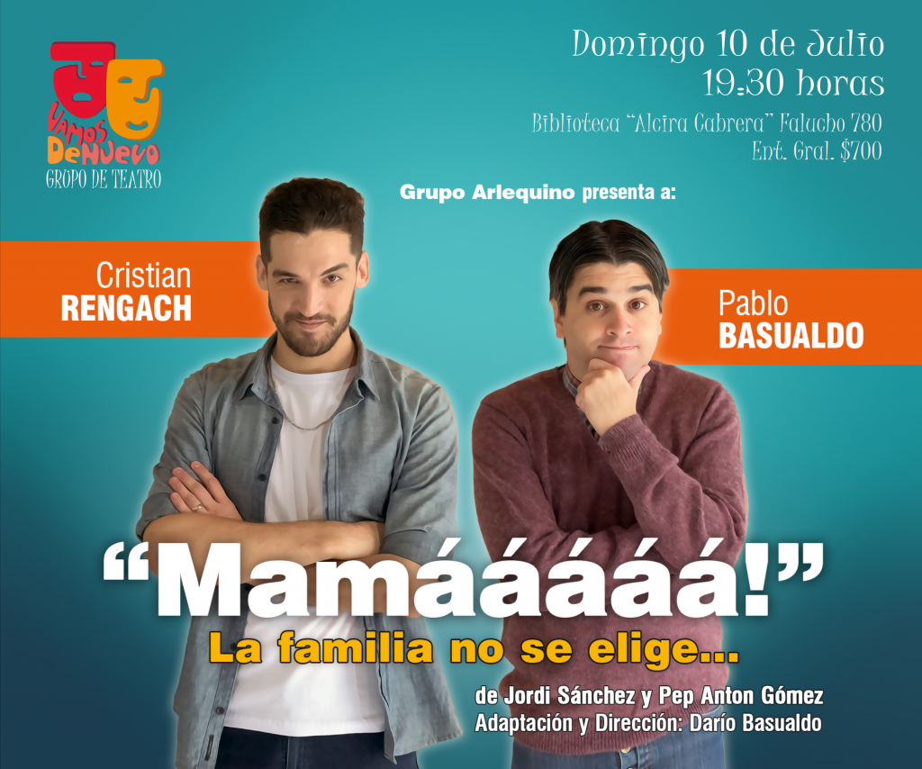 Con "Mamááá!" comienzan los espectáculos del mes de Julio en la sala de la calle Falucho, los que continúan el domingo 17 con la función de "El fusil de madera" de Duilio Lanzoni, realizada por el grupo Artecón invitado en esta oportunidad a "Vamos de Nuevo".