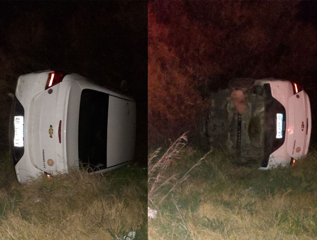 Un ambulancia SAME, con el doctor César Bedecarrás a cargo, trasladó a los dos ocupantes del Prisma hacia el hospital Capredoni, para prevención y controles.