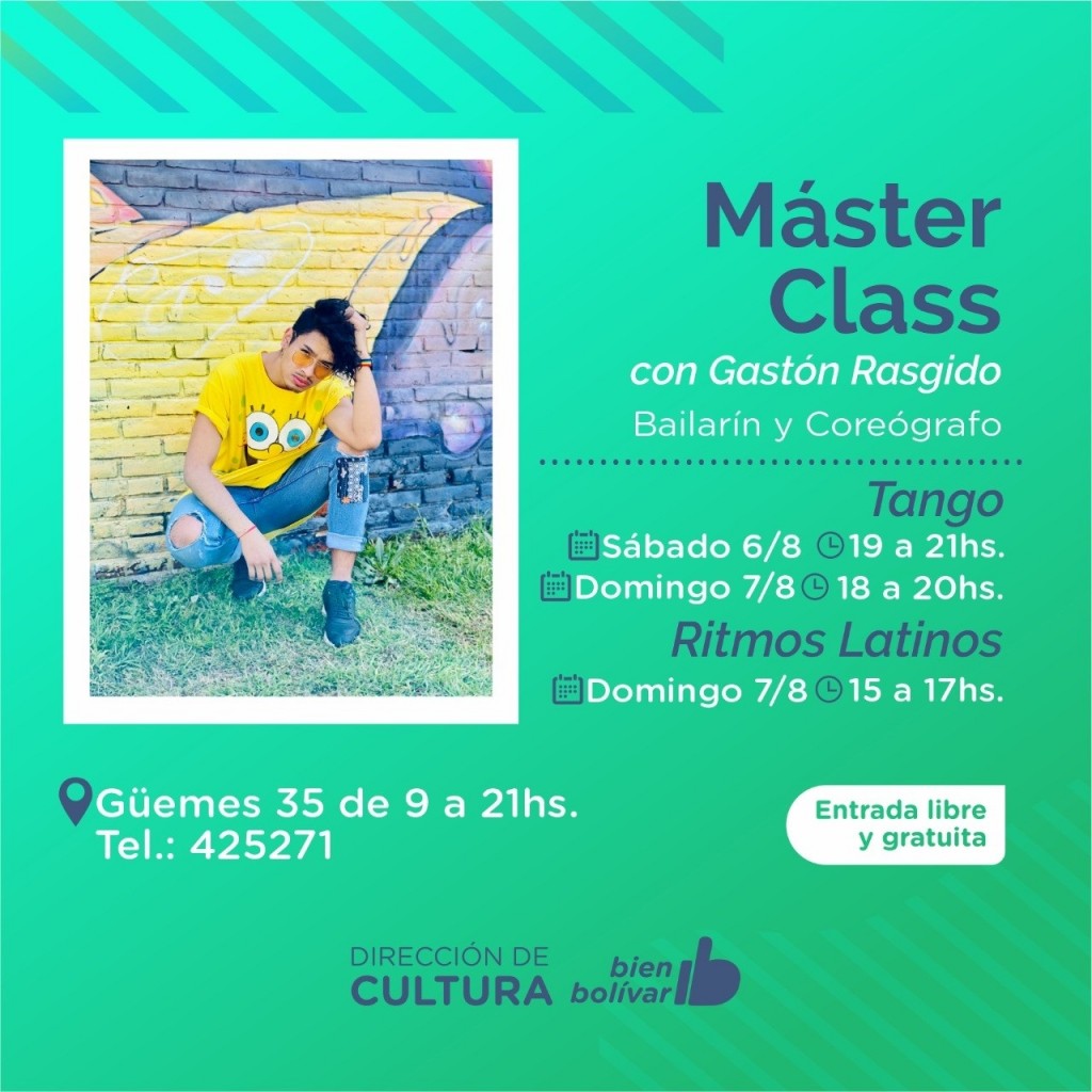 La Dirección de Cultura, a cargo de Jorge Fernández, recibirá por última vez este año a Rasguido, quien realizará tres jornadas intensivas de diferentes ritmos en Bolívar, con entrada libre y gratuita.
