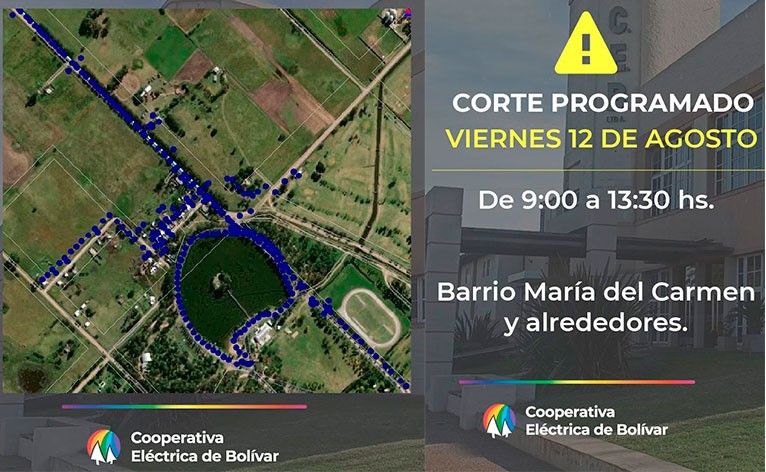 El corte provocará la salida de servicio del transformador que abastece al Barrio María del Carmen y alrededores.