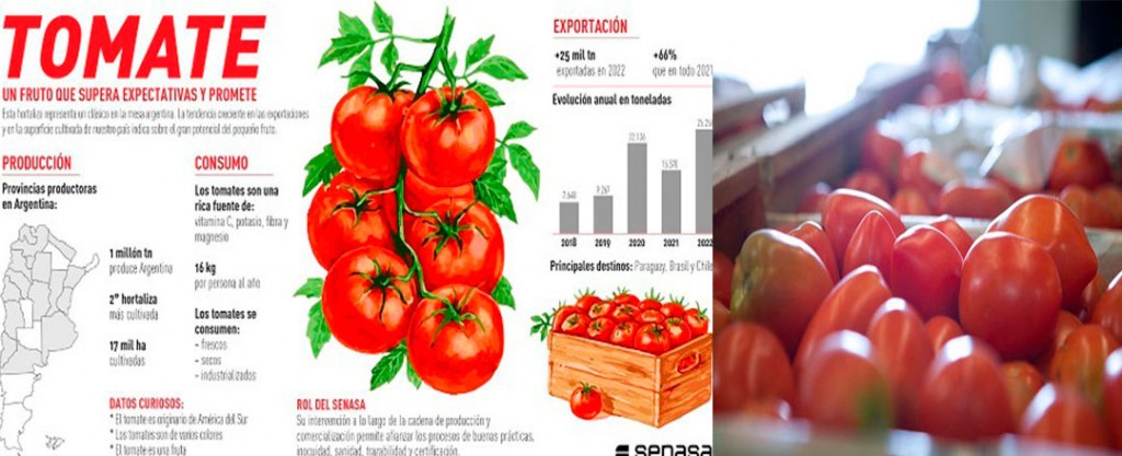 En nuestro país, el tomate es el segundo cultivo hortícola más importante después de la papa. Su producción se desarrolla en aproximadamente 17.000 hectáreas (alrededor un 60% se destina a mercado para consumo en fresco y un 40% para industria) de las cuales se obtienen cerca de 1.000.000 de toneladas.