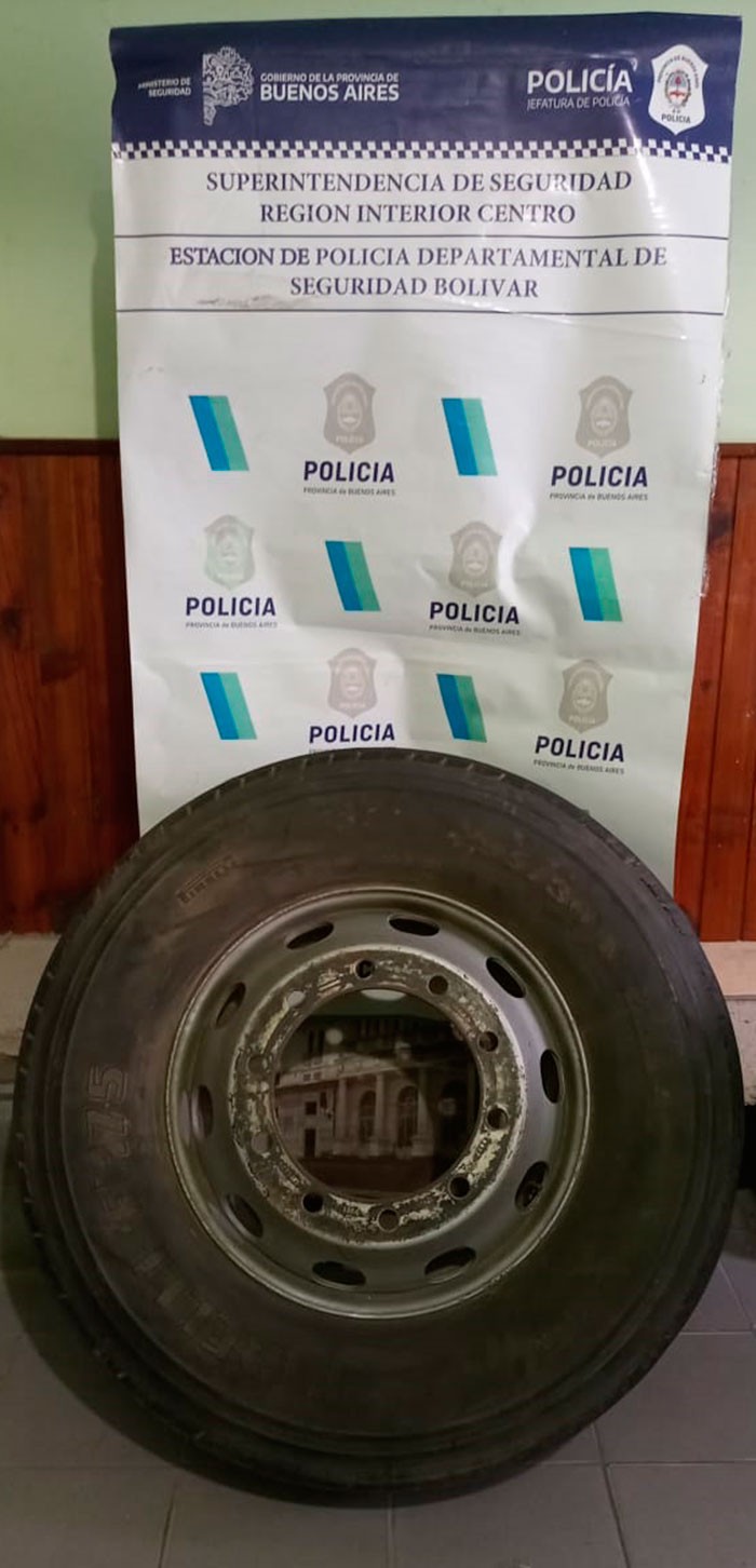 Con fecha 21, 22 horas, .PERSONAL DE GTO de Comisaria Bolívar  en circunstancias que se hallaba recorriendo por calle Príngles de este medio, observan a dos masculinos  cargar una rueda de camión en una camioneta y emprender su fuga.