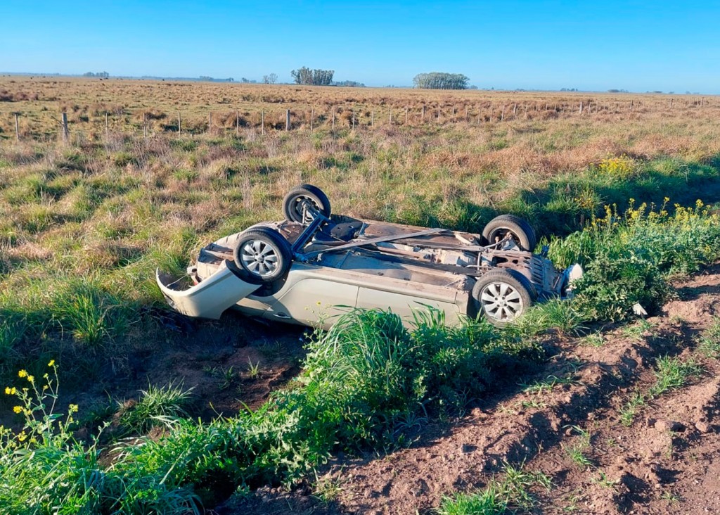 Este viernes en las primeras horas, se registró un vuelco en ruta provincial 65, en el tramo Bolívar/9 de Julio