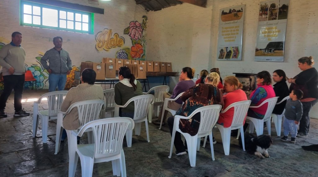 Acompañados por el delegado municipal Hernán Urrutia, el director de Producción Javier Fernández, integrantes de Desarrollo de la Comunidad y el productor local Guillermo Baldo, hicieron entrega de plantines y semillas, y brindaron una charla sobre huertas familiares.