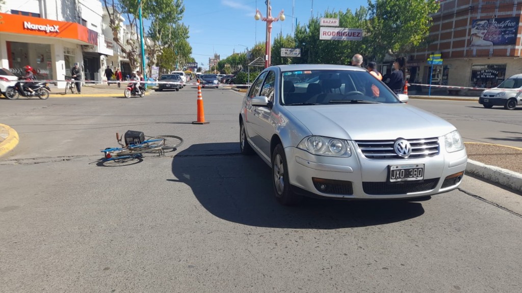 El conductor de un vehículo y una ciclista, coincidieron en tiempo y espacio en un zona céntrica de importante movimiento comercial, y en horario bancario.