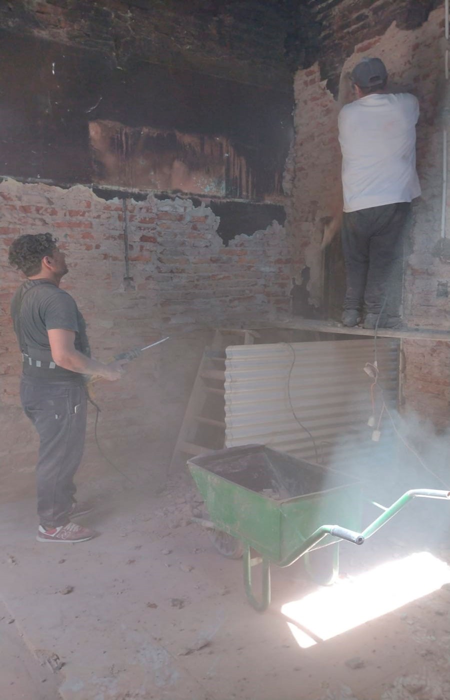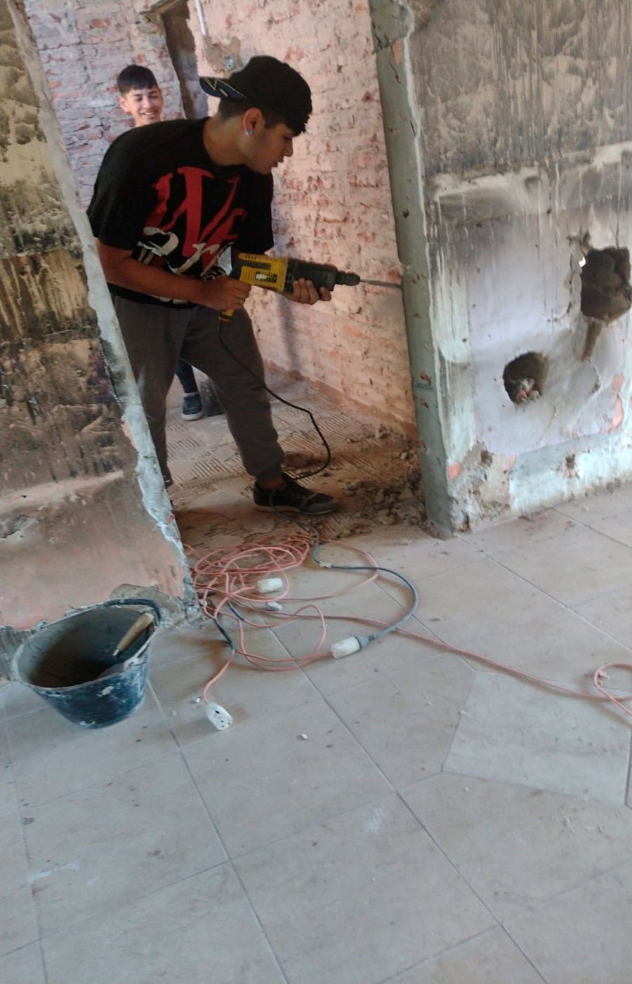 Marcelo Navoni es parte del Servicio penitenciario, ya que trabaja en la Unidad 17 de Urdampilleta, tiene conocimientos en albañilería y electricidad,  por lo que están avanzando en la reparación de la vivienda.