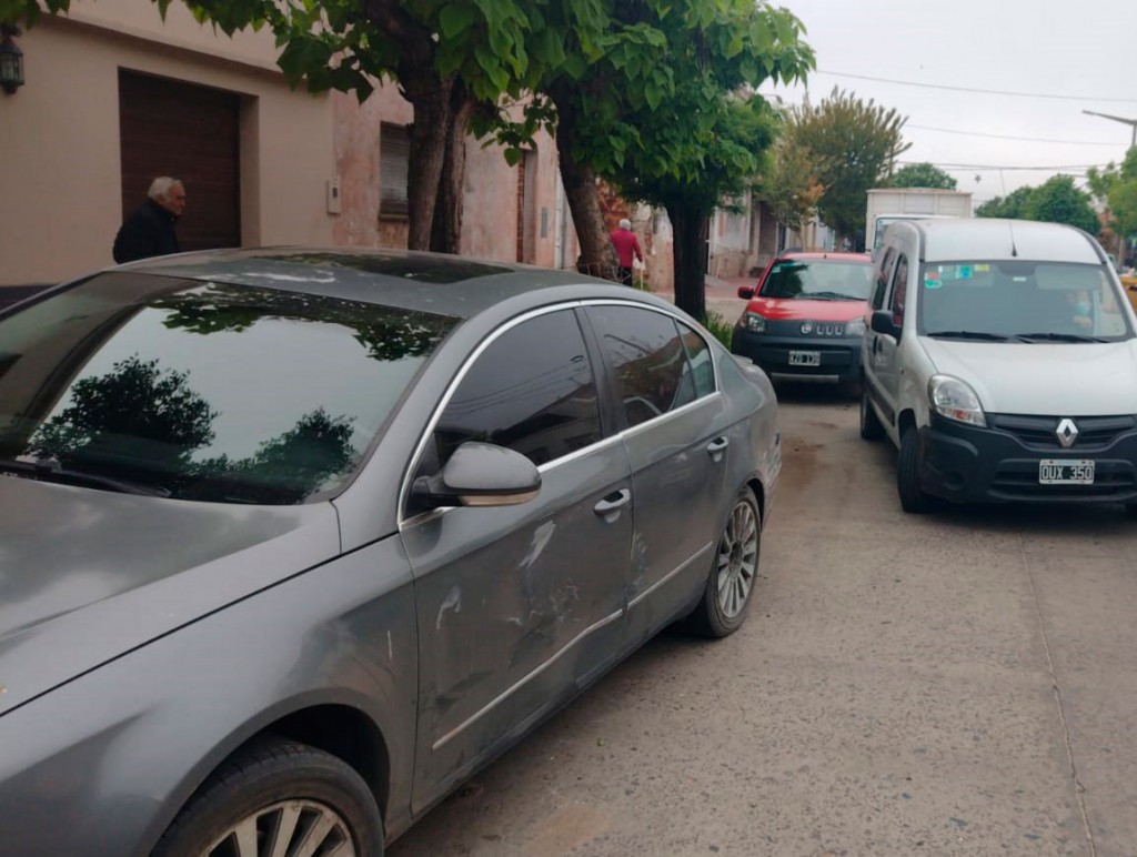 El auto que se encontraba estacionados es un Volkswagen Passat, con dominio colocado (FPN 870). En tanto una Renault Kangoo con dominio colocado (OUX 350) es la que impacta el lateral del vehículo en cuestión.
