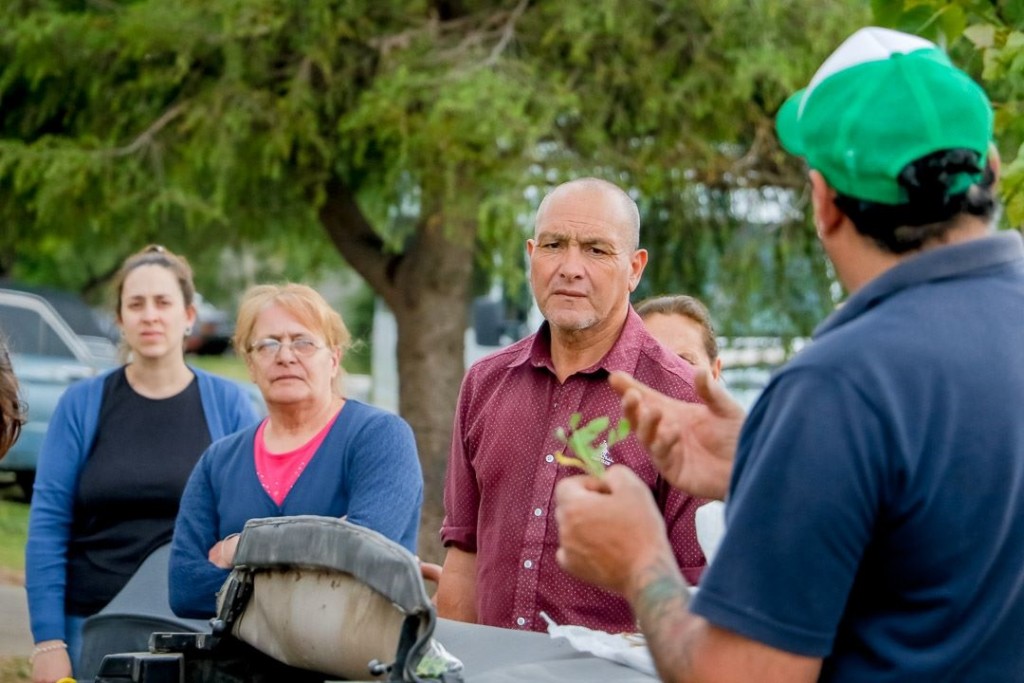 Este martes, familias de barrio Jardín recibieron los kist de semillas de temporada y plantines. Además, el productor local Guillermo Baldo brindó una charla informativa para cuidar una huerta.