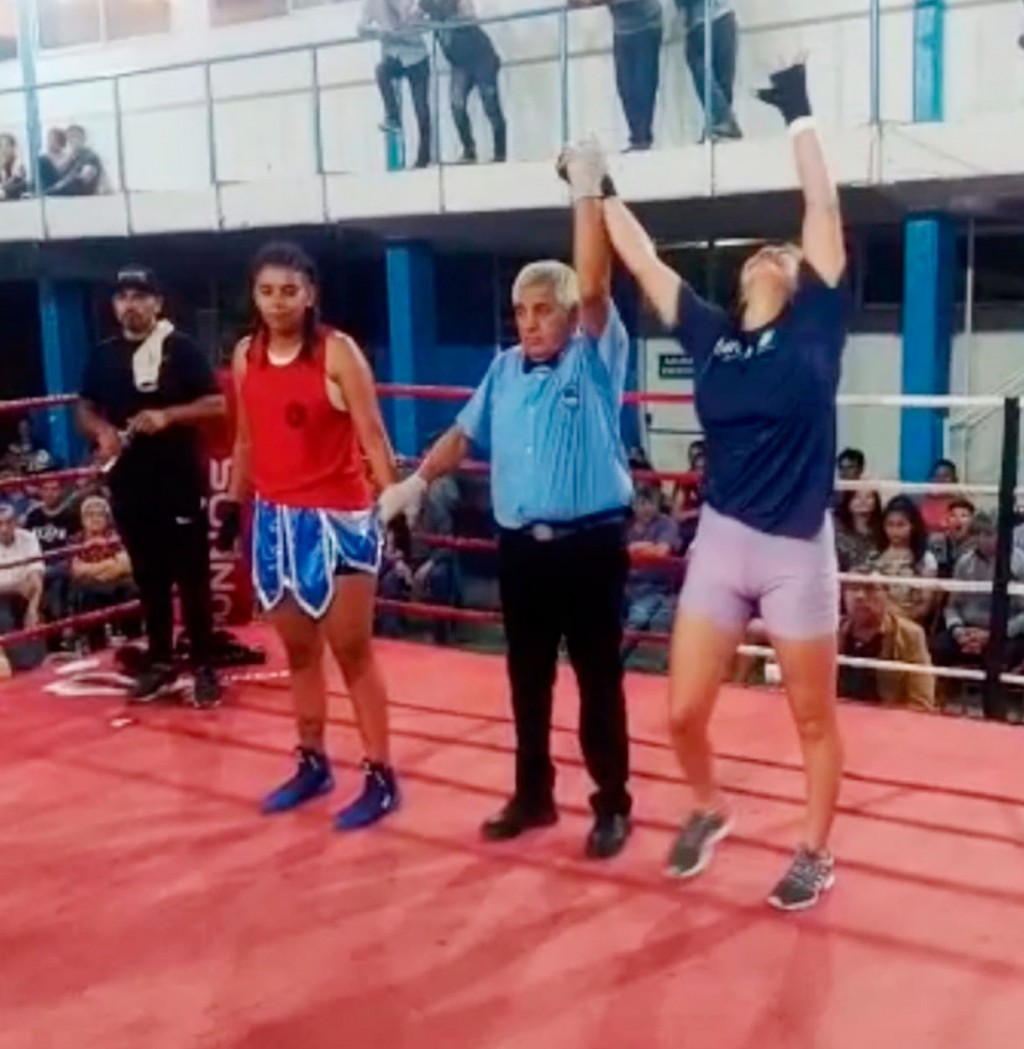 Después de tres meses sin boxear, “volvimos el sábado y nos trajimos el triunfo para Bolívar”, mencionó. La pelea fue en General Acha, La Pampa, y su rival era de una chica local, muy buena, de una contextura similar a la de ella, pero la pudimos llevar, indicó.