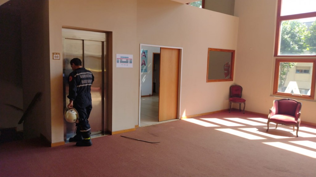 Bomberos Voluntarios trabajó para liberar personas retenidas en el ascensor del Cine Avenida