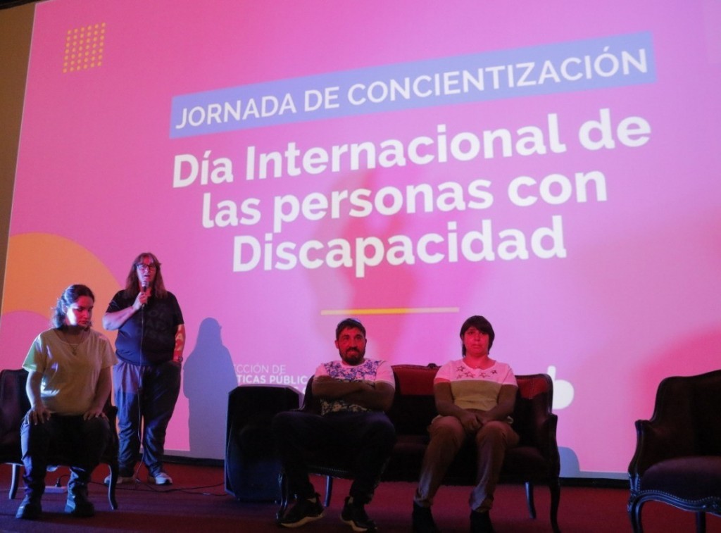 La jornada comenzó con una charla de concientización en el Cine Avenida, a cargo de Antonella Campitelli, el deportista de la Selección Nacional de Atletismo Mariano Domínguez y la Dra. Dana Miñola que aplica la ley en defensa de los derechos de las personas con discapacidad.