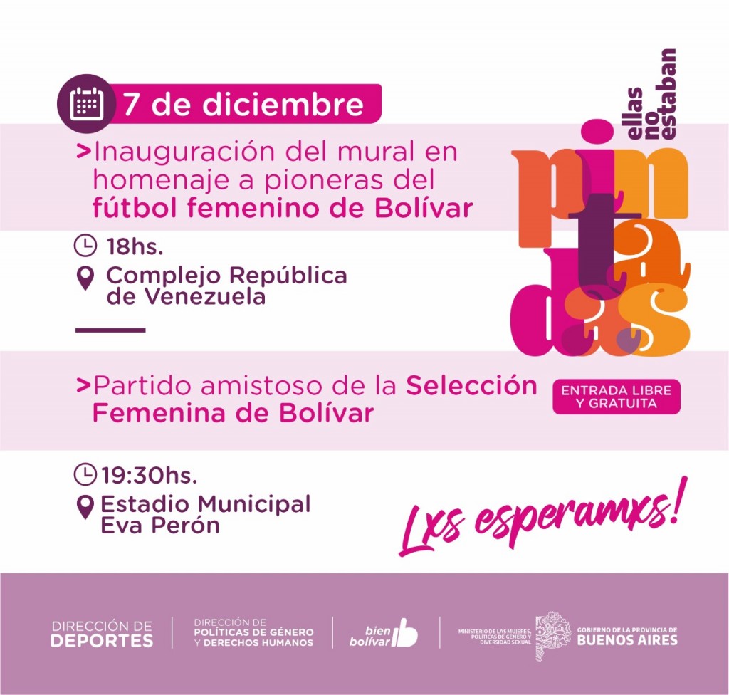 La Dirección de Políticas de Género y Derechos Humanos realizará la inauguración del mural en homenaje a las pioneras del fútbol femenino en Bolívar, este miércoles 7 a las 18hs, en el Complejo República de Venezuela.-