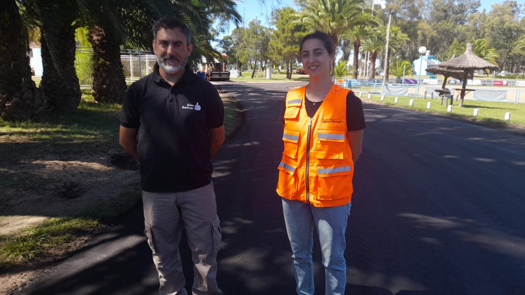 Este jueves poe la mañana, el secretario de Obras Públicas, junto a Denise Luis-estudiante avanzada en Ingeniería Civil-anunciaron la habilitación del tránsito en el Parque Las Acollaradas, donde se está llevando a cabo la primera etapa de la obra de repavimentación. -