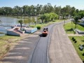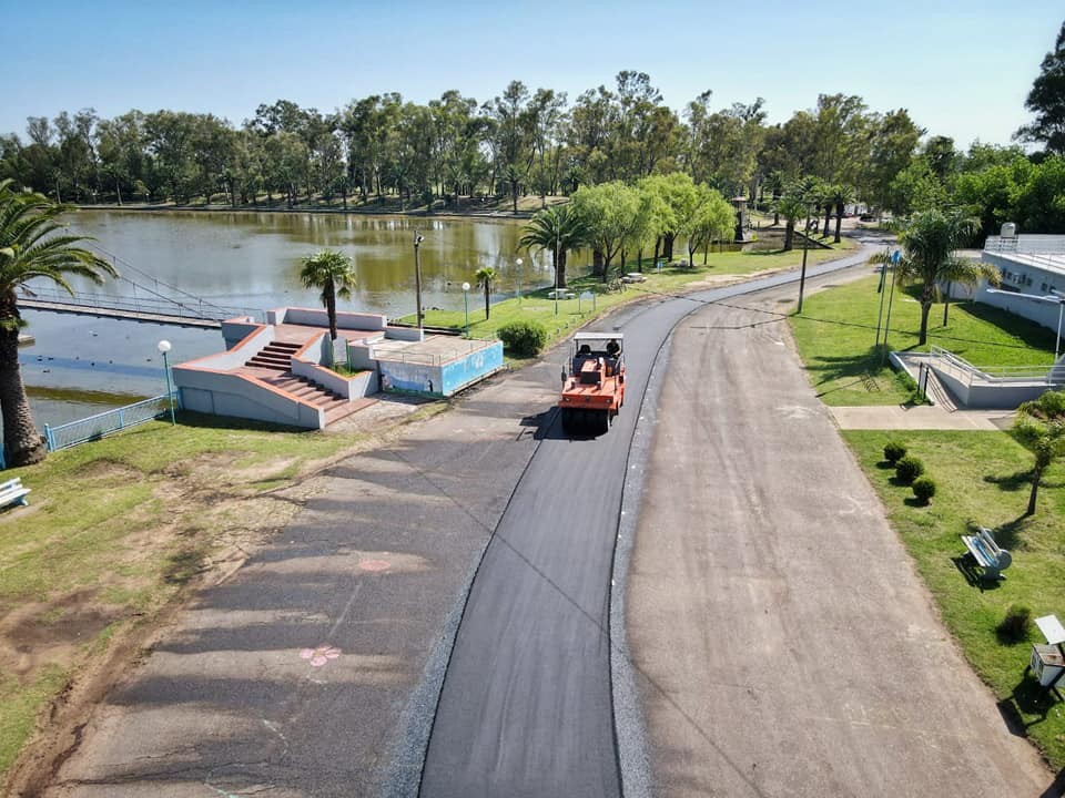 El pavimento del Parque Municipal data del año 1992, y el equipo de la Secretaría de Obras Públicas del Municipio, lleva adelante la enorme tarea de poner en valor el principal atractivo y espacio verde de nuestra ciudad.