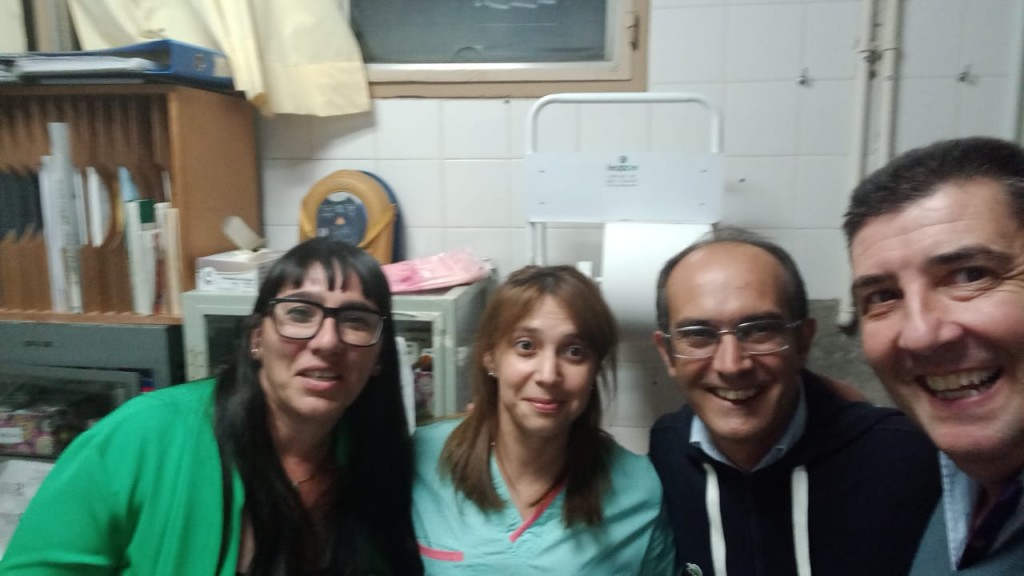 Más tarde, también acompañado por Willy Fernández, Pisano se acercó a los hospitales de Pirovano y Urdampilleta, donde brindaron junto al personal de guardia en ambas localidades.