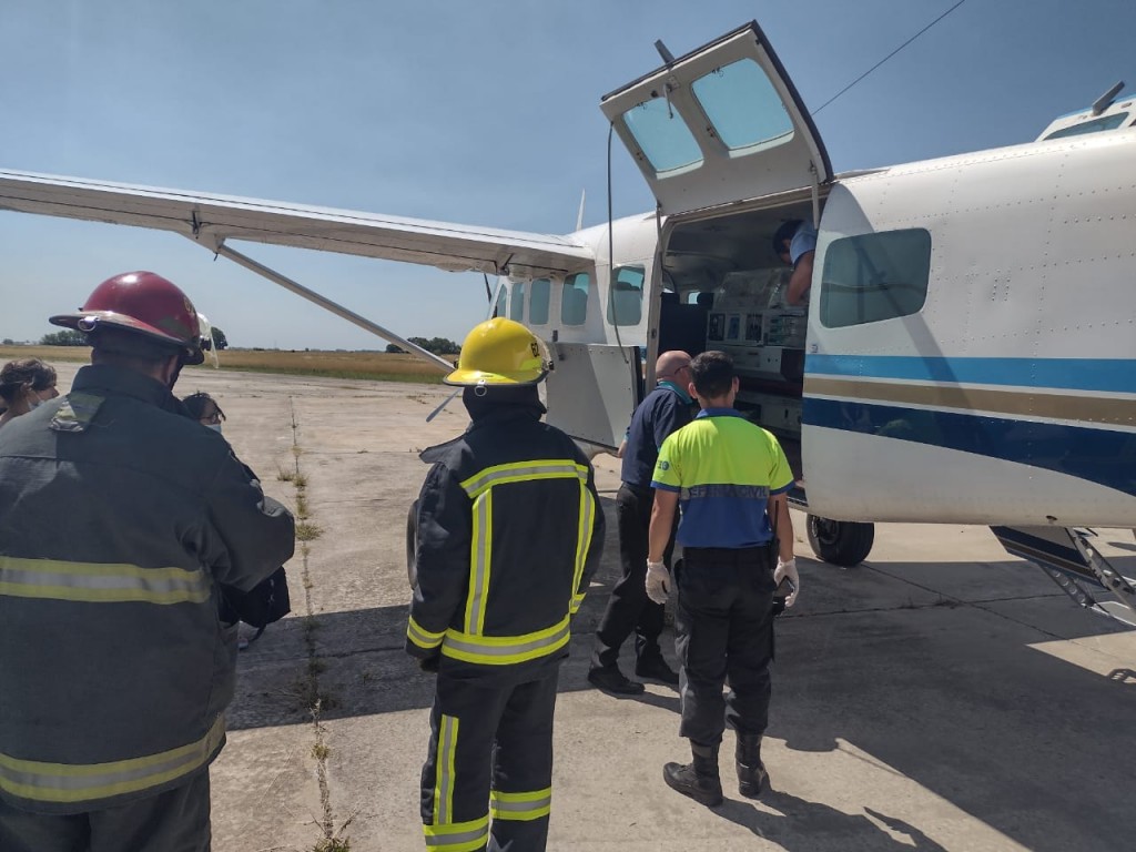 Como indica el protocolo, una unidad de Bomberos Voluntarios (medida preventiva) a cargo del Oficial Sebastián cepeda, personal de Defensa Civil y Hospital Capredoni  con la Unidad de Terapia Intensiva Neonatal, se dieron cita en el aeródromo local.