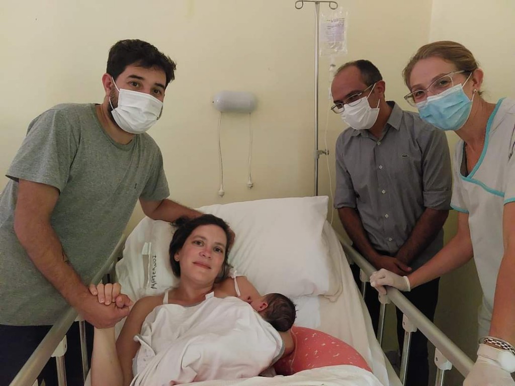La ginecóloga Daniela Angelli, el Dr. Eduardo Zazzarini y la obstetra Victoria Berardi fueron los profesionales encargados de recibir al bebé.