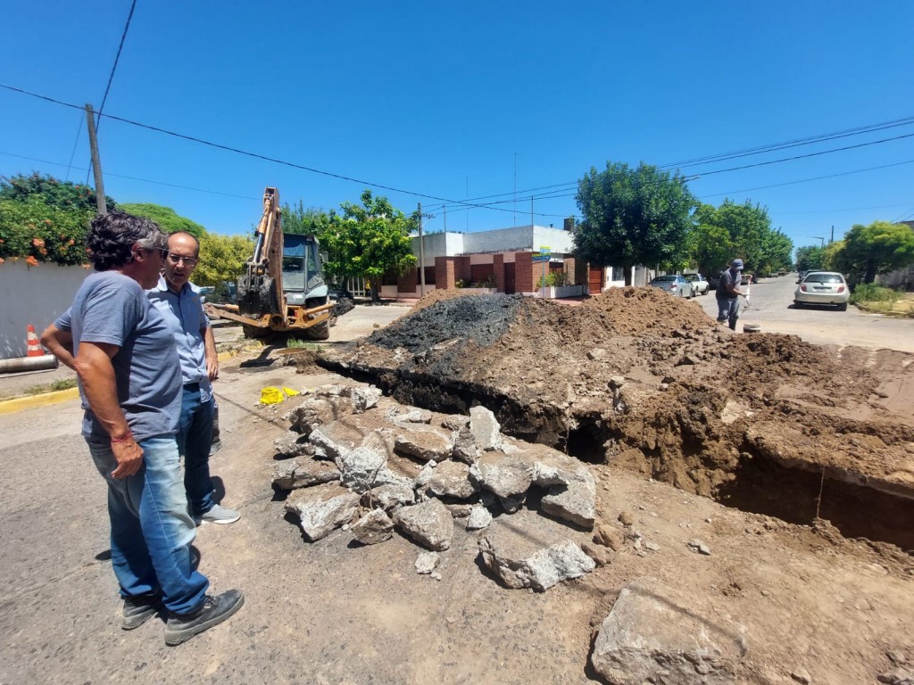 El equipo de Obras Sanitarias se trabajó en la reparación de un caño de cloacas, en la intersección de las calles Olavarría y Santos Plaza.