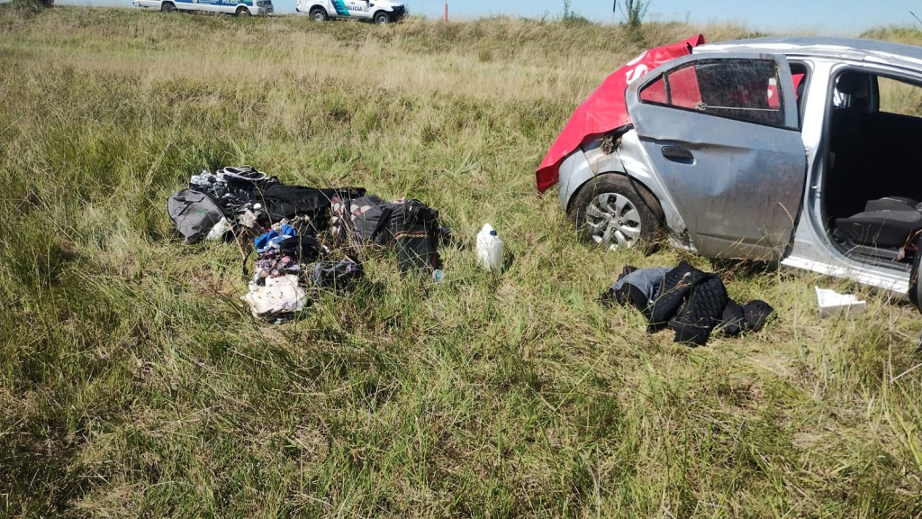 Seis eran los ocupantes de un Chevrolet ONIX, de los cuales una mujer resultó fallecida tras el despiste con posterior vuelco. Al arribar al lugar los servicios emergentes, el vehículo se encontraba sobre sus cuatro ruedas, pero a unos cuentos metros de la cinta asfáltica.