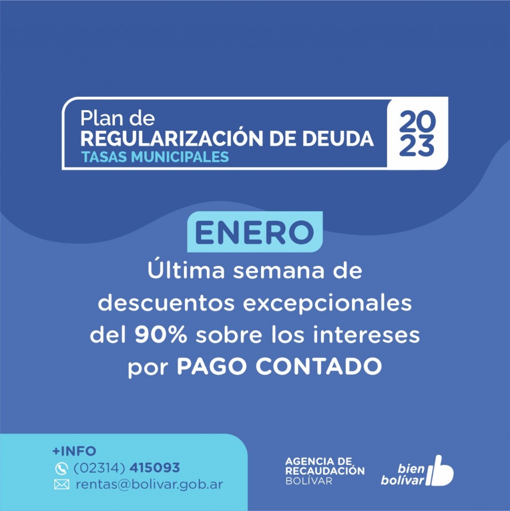 Durante la última semana de enero, los y las contribuyentes que posean deudas en las tasas municipales pueden realizar el pago con descuento en la Agencia de Recaudación Bolívar.