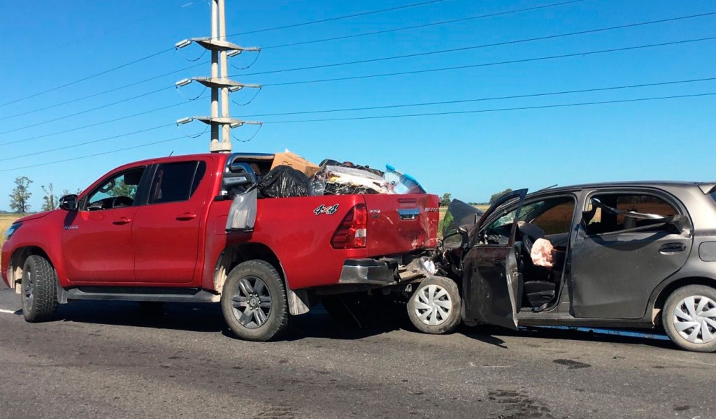 La fuerte colisión se registró entre una camioneta Toyota Hilux, con dominio colocado AE655GJ, y un vehículo Toyota Etios, con dominio colocado AD704MM.