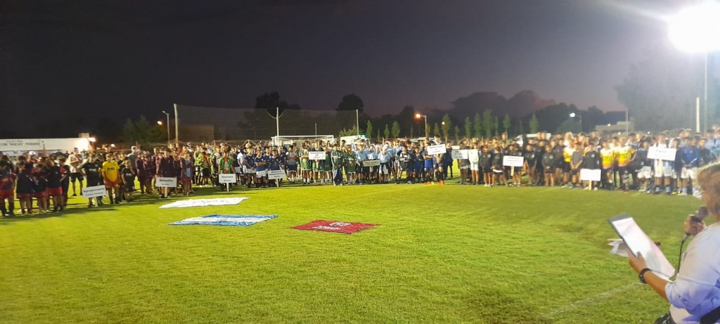 La actividad había comenzado a las 18 horas, con dos partidos previstos para la apertura, y a las 20 con la habitual sensación de lluvia que nunca termina concretándose, el cielo se abrió y pudo darse el acto inaugural.