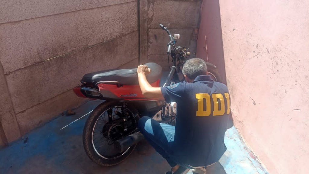 La información de que la moto se encontraba en poder de un masculino mayor de edad, quien había desarmado la misma y retirado su chapa patente fines ocultar su origen mal habido, fue rápidamente procesada por los investigadores locales en la tarde de ayer y en la víspera de la jornada de hoy personal de la Fiscalía local a cargo de la Dra. JULIA MARÍA SEBASTIÁN (UFI 15), solicitó al Juzgado de Garantías, de la Dra. FABIANA SAN ROMAN la respectiva orden de allanamiento y secuestro, manda judicial que fue resuelta de manera muy expeditiva, permitiendo así el éxito del procedimiento policial, y el recupero de la moto, cuya numeración de chasis y motor coincide con la motocicleta robada.