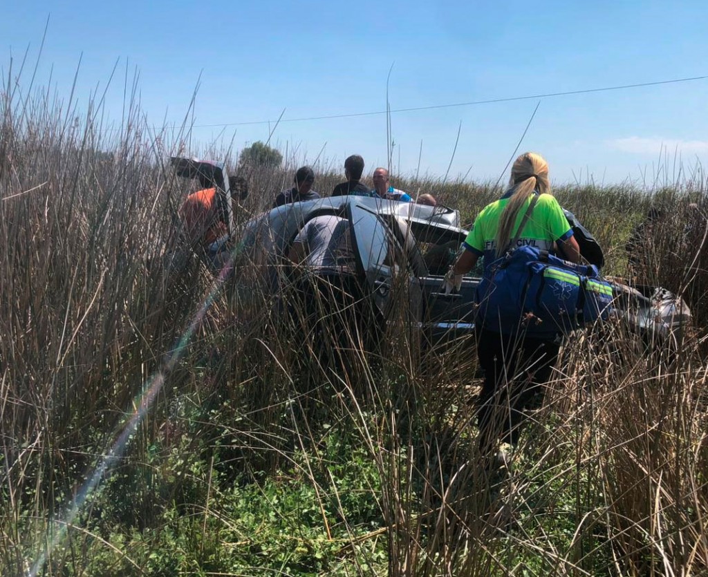 Una familia conformada el marido, la mujer y dos hijos menores, sufrió el despiste y posterior vuelco de su vehículo. Se trata de Fiat Siena, con dominio colocado JOA040. Una ambulancia del SAME con el doctor González a cargo asistió a los accidentados y por cuestiones preventivas, decidió trasladarlos al Capredoni.