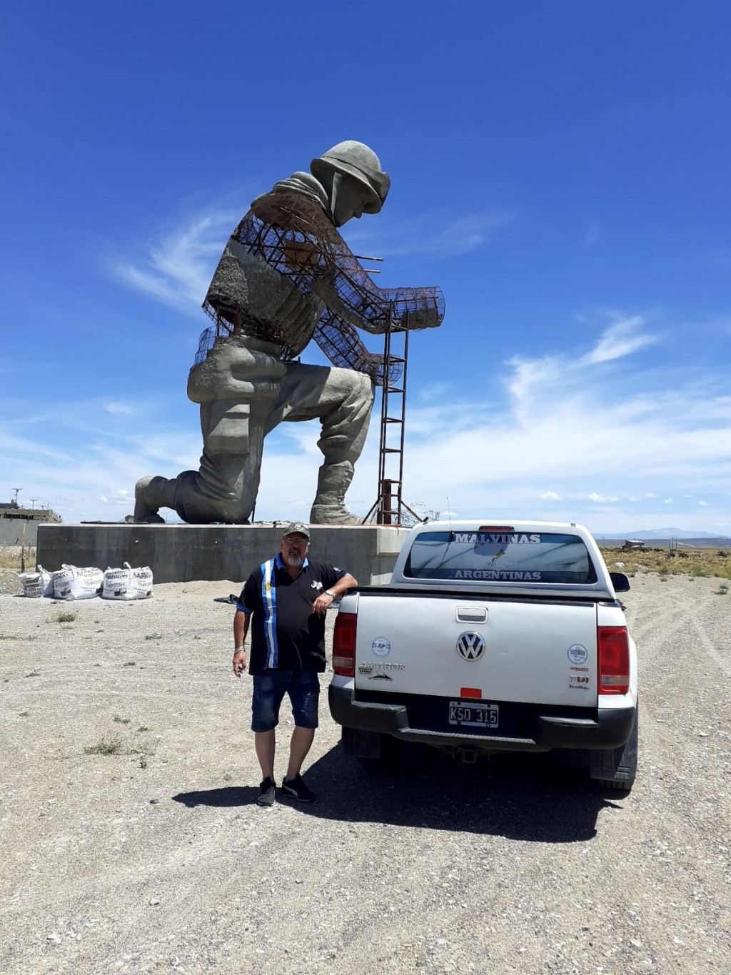 El Excombatiente Fabián Sgarlatta viajó más de 1000 kilómetros para conocer el monumento al soldado en Zapala