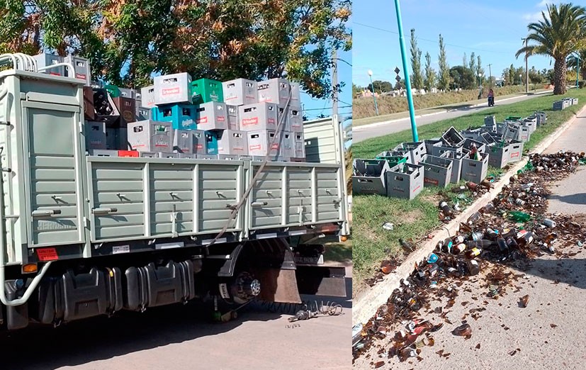 Cayeron al asfalto cajones con botellas vacías, no hubo personas afectadas