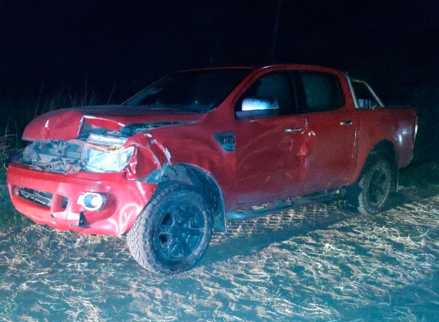 Ellos transitaban a bordo de una pick up Ford Ranger, con dominio PCR621, que resultó con daños en la carrocería, si bien el habitáculo protegió a la perfección a los ocupantes.