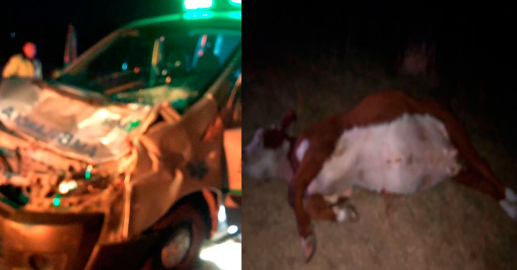 Se recuperan favorablemente los accidentados en la ruta nacional 205, al impactar contra un novillo