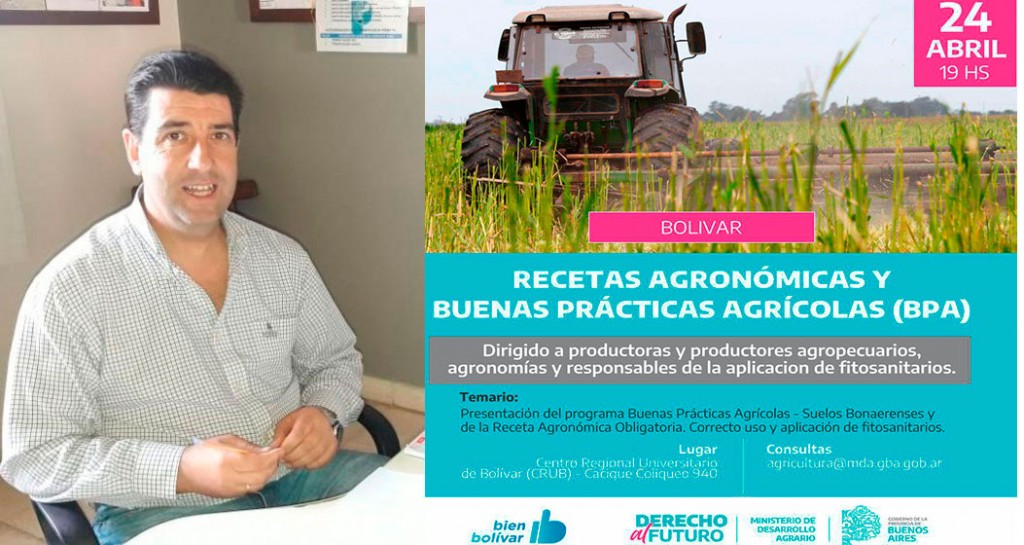 Este lunes 24 a las 19 horas, se realizará en el CRUB Bolívar la presentación del programa Buenas Prácticas Agrícolas - Suelos Bonaerenses y Receta Agronómica. Uso y aplicación de fitosanitarios.-