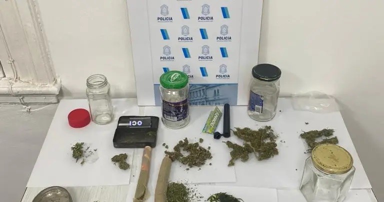 La policía ingresó al mismo y encontró, sobre la barra del lugar una bandeja de plástico transparente con sustancia vegetal símil “marihuana o cannabis sativa” y a su lado una caja con dos cigarrillos armados denominado “porro” de gran tamaño.