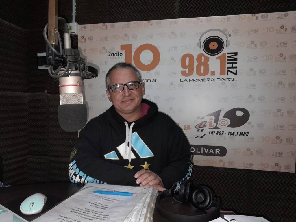 El joven con raíces bolivarenses, hoy radicado en La Plata se acercó a los estudios de FM 10, para darle marco a la invitación al acto que se realizará este martes frente al Colegio Nacional.-